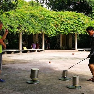在重庆花卉园内,有几位老大爷在抽陀螺。这些陀螺自带音箱,他们伴随着音乐一边同时抽数个陀螺,一边跳舞,鞭子发出响亮的声音,在数百米外也是清晰可辨。这些活动对老年人来说,能起到锻炼身体的作用,还能排解情绪。(陈乐阳 渝北区新牌坊小学)