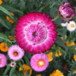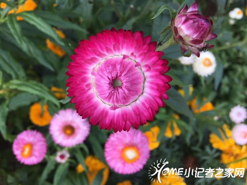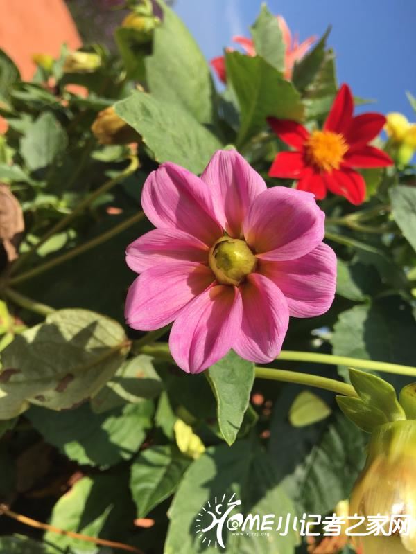 刚走进大门,只见黄色、紫色、白色、粉色·····各色的花争奇斗艳,簇拥在一起 ,好像窃窃私语;好像互相比美;好像在相互问候。一切都是那么生机勃勃,那么漂亮。
