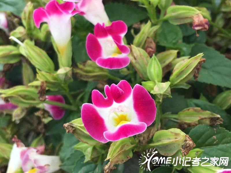 一直往前走,走到了一片醉蝶的花海中。醉蝶有粉红色的、玫红色的、白色的……真是眼花缭乱,颜色各异啊!醉蝶的形状更是千姿百态,有的才展开两三片花瓣,有的还是快要张开花瓣的花骨朵儿,看起来饱胀得马上要破裂似的,有的花瓣全展开了,露出了淡红色的花蕊。