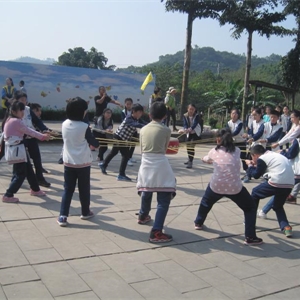 在前不久,中华路小学六年级全体同学来到位于白市驿的毛毛虫生态农场进行研学活动。其中,有一个项目叫“鼓面击球”。要二十名同学拉平鼓面,将球放于鼓面,再一起向上拉动,让鼓每次都能接到球。六年级每个同学都认真专注、齐心协力,懂得了团结的力量!(中华路小学 甘雨露)