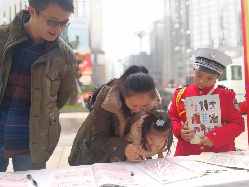 近日,12月2日,在2017年“12.2全国交通安全日”活动当天,江北区新村同创国际小学在观音桥商圈广场开展“中国梦●文明行——我是江北小交警’”活动。(新村·同创国际小学 牟晋旗)