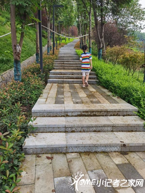 公园最核心的景点是步道,步道依山而建,蜿蜒盘旋,上下起伏,红绿相间,像一条彩带镶嵌在山腰上。步道是塑胶的,很多附近的居民在这里散步、跑步或骑自行车,长长的步道两边树木掩映,加上步道的弯曲和坡度,随处都可以拍出一幅风景画。步道两边是各种花草植物,春天的时候这里还可以看到真实版的开往春天的列车。行走在步道上,可以让人真切的感受到山城的8D魔幻气质。