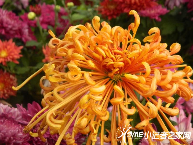 园博园之秋,灿烂无比。一朵朵菊花如同烟花绽放,银杏叶纷纷落地,在地上铺起地毯。在被微微秋风吹起的柳枝后是那一只小船载着游客航行在湖面。(人民小学 赵璐嘉)