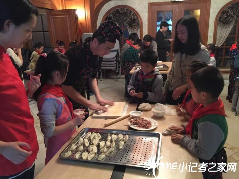 正在体验包饺子的同学们