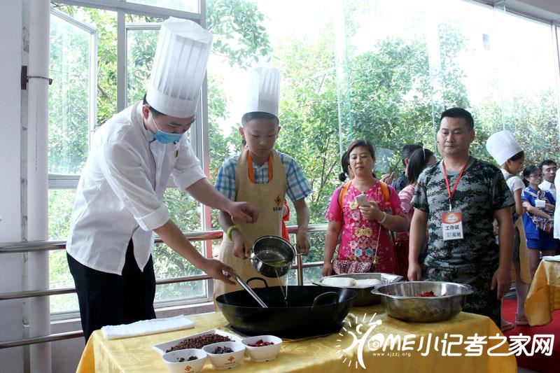 参观后,小记者们变身“大厨师”实践动手炒制火锅底料。炼油、下料、炒制……在师傅的带领下,小记者们每一个步骤都做的有模有样。炒制火锅底料时,最优秀、最认真的小记者还得到了秦妈“厨神”的奖励。