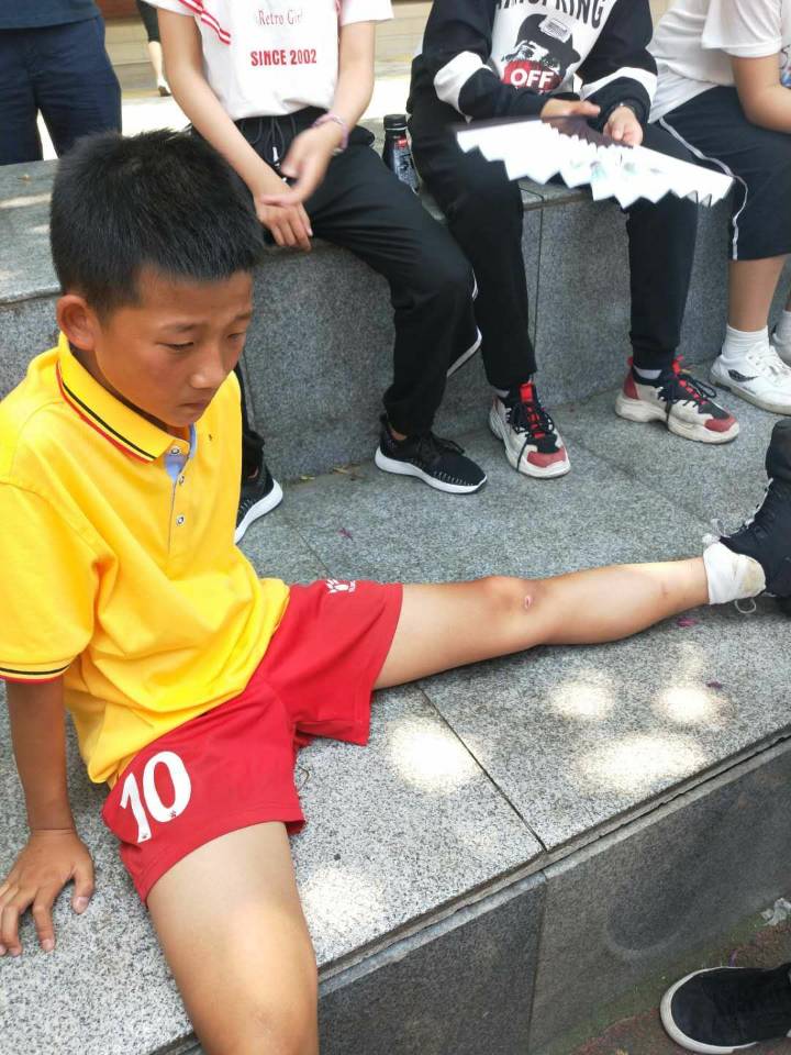 在体育节中,突然有群人围在一起,这是怎么回事呢?只见一个同学受伤了,受伤的同学叫李凯,他来自六年级一班。几个男同学连忙把李凯同学背到阴凉处坐下,一群同学又簇拥了过来,七嘴八舌的问着李凯的情况。只见李凯的脚踝处被人用纱布缠绕了几圈,满脸痛苦。为了让李凯同学得到治疗,几个男同学又把李凯背着到达了医务室。