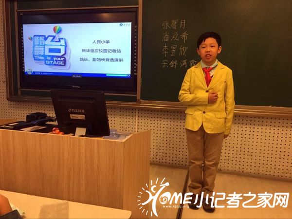 在站长竞选环节,人民小学“小明星”张馨月承诺“如果我当选站长,我一定会配合老师的工作,让大家在快乐的氛围中学习工作!”潘泓希也不甘示弱,落落大方地介绍自己:“我非常喜欢主持,尤其擅长新闻和写作。同时,我是班里的班长,班上的人没有不喜欢我的,他们对我的评价就两个字‘会玩’。希望大家投我一票!”最终两位同学分别当选校园记者站站长、副站长职位。(张敏)