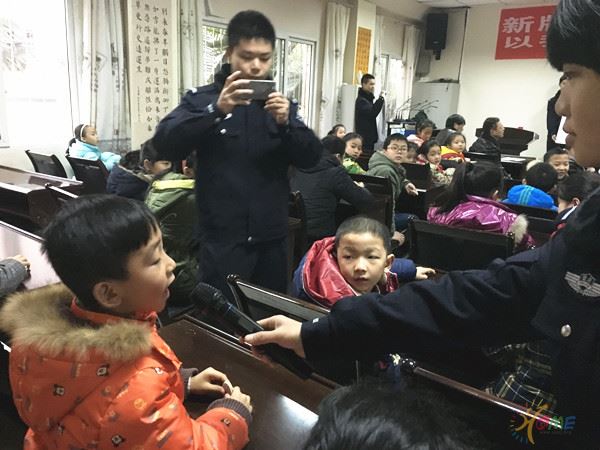 在车内如何自救?怎样购买和安全燃放烟花爆竹?重庆警察学院的学生通过以画报的形式向同学们介绍日常生活中注意的安全事项,分别从“不要跟陌生人走、在车内如何自救、如何购买安全食品、交通安全、购买和燃放烟花爆竹”等五个方面进行安全知识的讲解,学生还积极举手,参与互动问答。