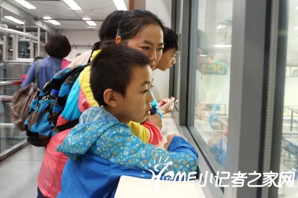在百事可乐生产车间内,小记者和家长一起参观讨论