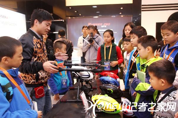 由公司研发的各种无人机都展列在华科尔的展馆内。小记者们一走进展馆,就被各式各样的无人机所吸引。无人机机长彭文吉就展馆内的无人机一一作了简单的介绍。