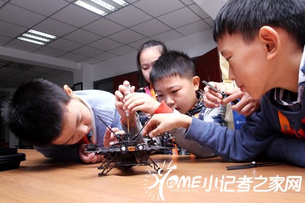 在对华科尔研发的无人机有了基本认识后,小记者们跟随工作人员来到了组装培训室,在这里无人机机长杨大福为小记者作了简单的无人机组装培训。在听过了讲解后,小记者分为了四组,开始动手进行无人机的组装。“我们小组5个人,每人都参与到了组装环节中,这个电池托盘就是我亲手组装上去的。”来自金山小学的罗健城拿着手中的成品无人机自豪地说道。