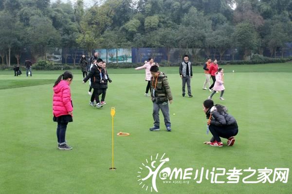 为了能让初识“高尔夫”的小记者更好地了解这项运动,重庆上邦高尔夫俱乐部职业教练陆毅首先就带小记者认识了“果岭”。在这里,陆毅带领小记者做起了小游戏,“让小记者将高尔夫球扔到指定位置,是为了初步让小记者体验如何控制自己的力度。” 教练陆毅表示。