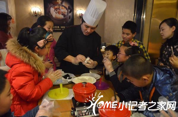 简爱碗仔厨师长陈龙向小记者们详细讲解熊猫饭制作过程