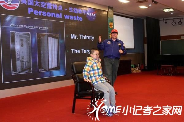 讲座上,查克里先生通过生动有趣的影音资料以及现场模拟空间站宇航员们的生活场景,带领小记者走进“空间站”,体验了一把航天生活。