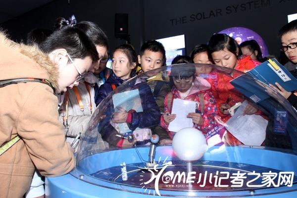 “宇宙到底是什么?”、“太阳系的组成有哪些?”、“黑洞是怎么形成的?”在场馆内,布灵客天文导师石霞首先为小记者们就天文知识进行了系统的科普,小记者们一边跟随石霞的脚步参观着展板知识,一遍认真地记录着笔记。