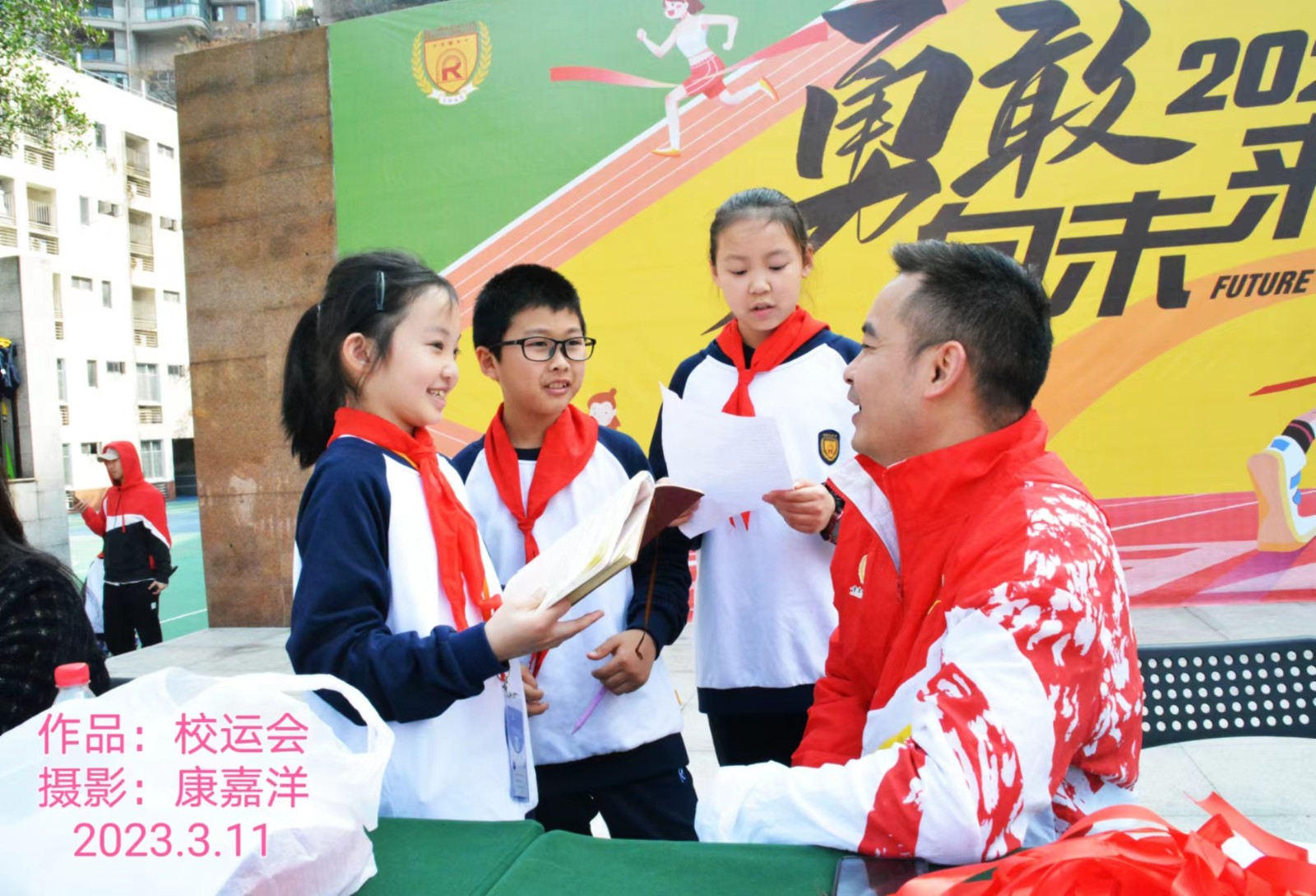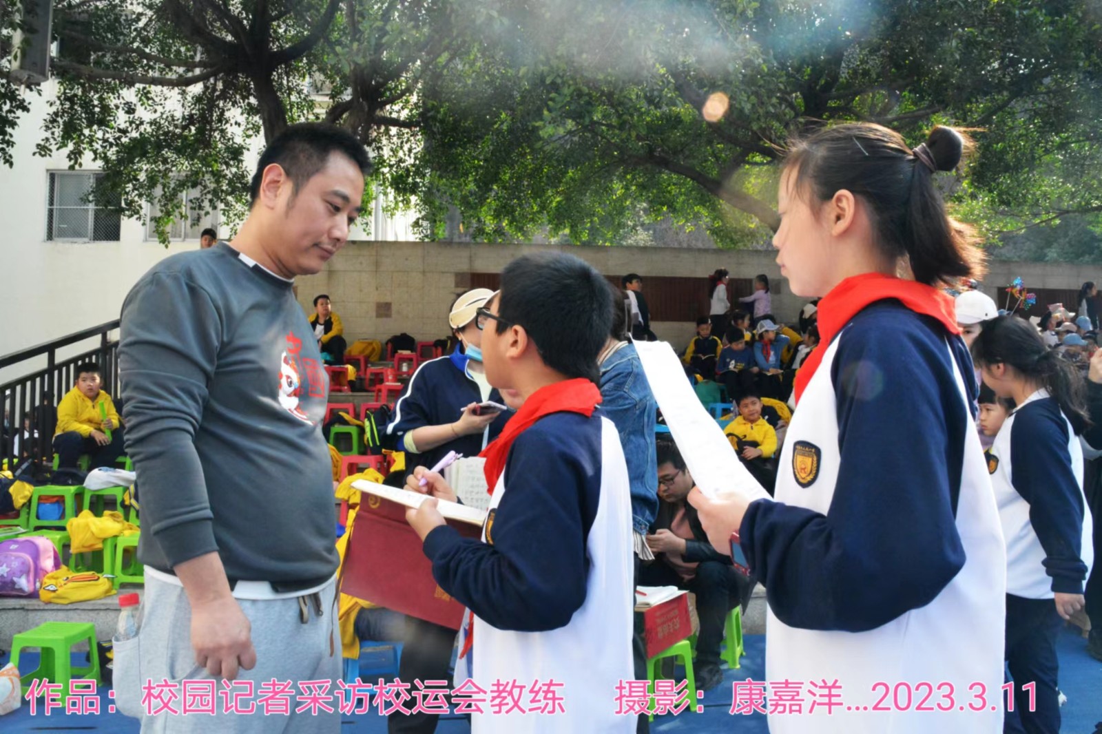 非常特别的是,在当天的运动场上,校小记者社团的记者们成为一道活跃在各个比赛项目的靓丽风景。采访校领导,采访运动员,采访体育老师,采访服务的老师同学。照相机,录像机,笔,笔记本成为他们记录美好瞬间的“武器”,出现老师拍学生,学生拍老师,抓拍运动员跑,跳力量的瞬间。当天下午三点过,运动会完成暨定项目,同学们登上大客车回到学校。