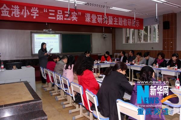 新华网重庆教育频道11月6日电 “我在当前的数学教学中发现,班上数学学习有两极划分的现象。平时数学成绩好的学生,现在越来越好;数学较差一点的学生,出现跟不上进度的情况,我想请教现场的数学老师们,你们是如何分析这种情况的,出现这样情况的‘根本’到底是什么?”11月5日下午,在渝北金港国际实验小学开展的“数学主题教研——‘解决问题’”公开展示活动上,一位三年级数学教师提出了这一问题。