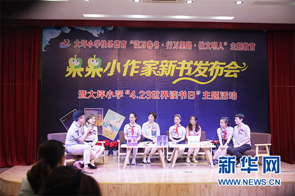 新华网重庆教育频道4月24日电 每天坚持写作一千字,两个月创作出科幻童话小说,来自渝中区书香班级“书韵中队”的3名小学生利用暑假创作了4本小说。4月23日,正值第24个“世界读书日”,大坪小学举办“果果小作家新书发布会”暨世界读书日主题活动,3位小作家携新书与师生分享写作心得。