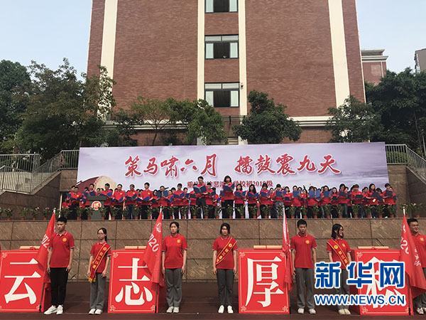 重庆市徐悲鸿中学举行中考誓师大会。新华网发(陈俊杰 摄)
