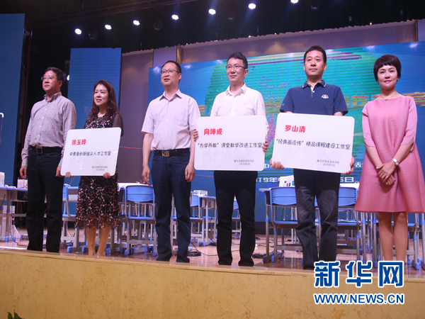 开幕式现场为各个老师的工作室授牌。新华网发(时文进摄)