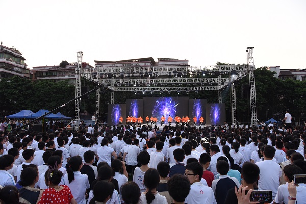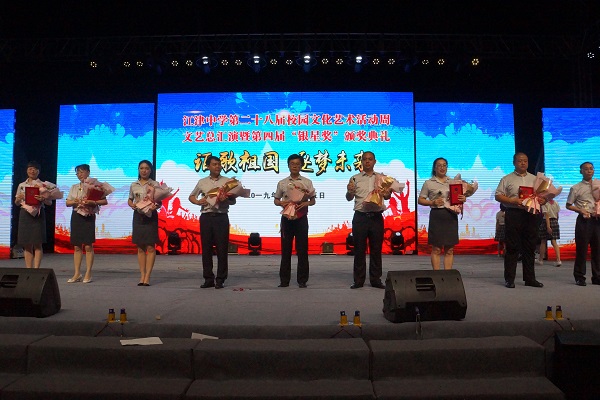 4月25日晚上7点整,江津中学“讴歌祖国 逐梦未来”校园文化艺术活动周文艺总汇演暨第四届“银星奖”颁奖典礼在学校田径场举行。