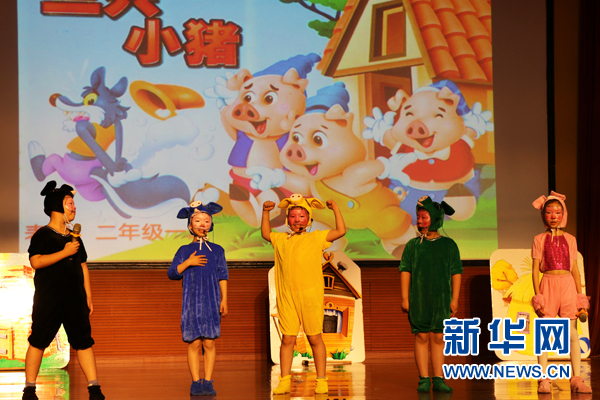 在六一汇演中,歌舞纷呈,新意满满。一部分都是以经典故事为背景进行创作的,从古述今,引经诵典。二年级二班的小朋友,借着东风,开始了《草船借箭》之旅,生动形象地演绎出大家所熟悉的课本经典故事。此外,还有班级将童话故事《三只小猪》从课堂中跳脱出来进行演绎,三只小猪各凭本事建立了自己的小屋并和森林中的大灰狼斗智斗勇,获得胜利。