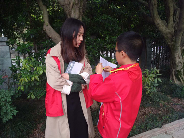 迈出了采访实践的第一步,小记者们逐渐克服了紧张情绪,变得更加大方自信。开始走到人群中,通过采访搜集更多的新闻素材。“同学,您好,为这次的表演您做了哪些准备?遇到什么苦难了吗?是怎么克服困难的呢?”“老师您作为志愿者,为本次开幕式具体做了哪些事情呢?”一连串的发问,将三位小记者的新闻素养展露无疑。他们与老师、同学交谈着,不时拿笔记下重点,直到开幕式结束。