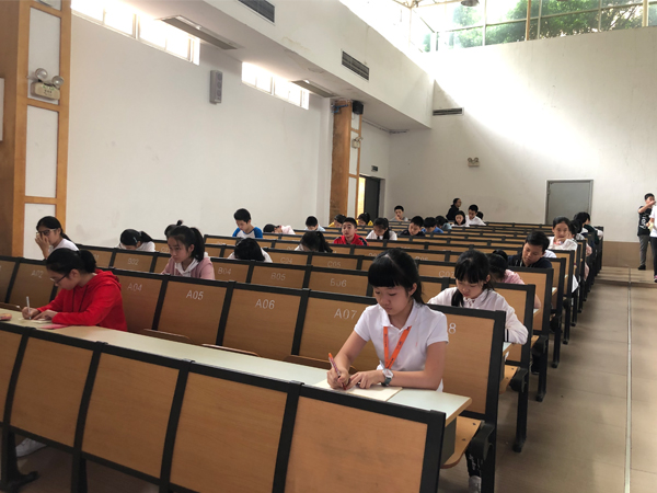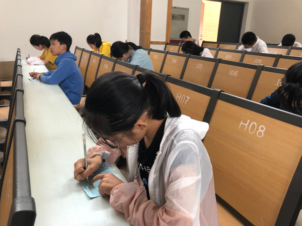 当老师说笔试开始后,只听见齐刷刷的纸笔书写声,所有都在认真地思考,竭尽全力完成笔试题目。