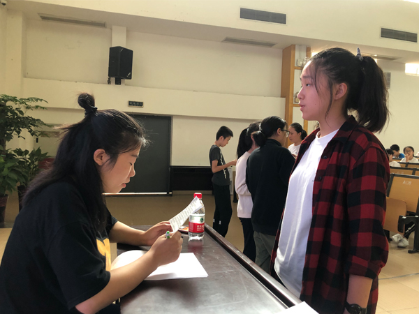 笔试结束后,进入到面试环节。老师在仔细阅读学生笔试文章的同时,倾听学生的自我介绍,当自我介绍结束后老师便向学生提出相关问题。来自初一(11)班的于小鱼说道:“我是之前珊瑚小学校园记者团的,深入初中后我想继续参加校园记者团,这已经变成了我的一个兴趣.......”另一边来自初一(5)班的李诗苗同样不甘示弱:“我想要锻炼我的表达能力和写作能力,我会尽全力去完成老师布置的每一次任务.......”候选小记者们侃侃而谈,用自己的行动和言语,展示着南开(融侨)中学初一学子的风采。