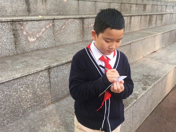 校园记者团老师将小记者们分为两组,李想、李尚恩为一组;张国尧、刘承禹分为一组。随后各组人员还进行了统筹、文字、摄影等不同职能分工,以更全方面、深度地对此次事件的过程和意义进行报道。