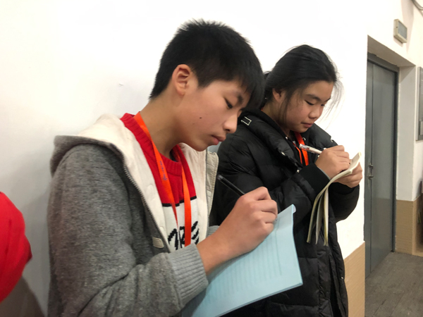 在校园记者团老师的带领下,小记者们深入到活动现场,认真观看比赛,用手里的笔捕捉记录现场细节,并在活动现场,每组分别针对自己所要采访的对象进行了采访。