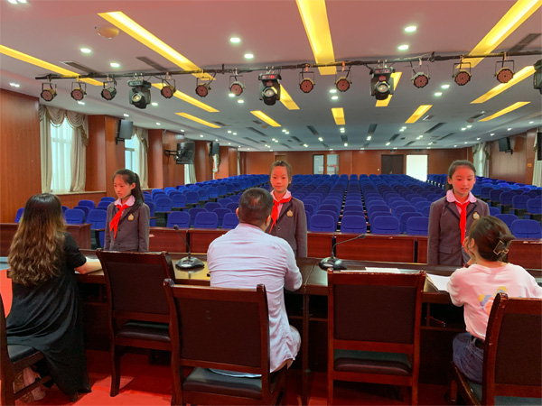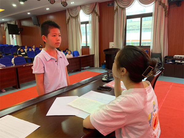 同学们陆续来到面试现场等待面试开始。面试现场,老师在仔细阅读学生笔试文章的同时也会向报名同学提出相关问题“为什么想要加入校园记者团”、“你眼中的记者是什么样的”“你认为校园小记者是做什么的”同学们面对老师的提问侃侃而谈,讲出自己加入校园记者团的无限遐想,展现了翠云小学学子的风采。