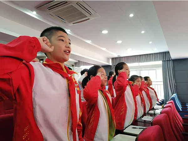 “我是合川区新华小学的学生,我志愿加入小记者队伍...…”在本节课的最后,合川区新华小学小记者社团举行了成团宣誓仪式,小记者充满斗志地进行了宣誓,愿他们能做一个“校园的发现者、梦想的记录者、文化的传播者”。