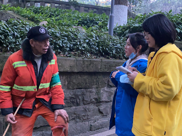 小记者分别对青年志愿者协会的指导老师进行了采访,“请问您认为本次志愿活动的目的和意义是什么呢?”谢老师表示,”志愿行为也许并不是要做成好大一件事,而是要传递一种正能量的思想。”另一位小记者则采访了在沙坪公园的游客:”您好,请问您对于八中青协同学们举办这次捡拾垃圾的活动有什么看法呢?”“非常好,现在的学生娃娃就应该多做一些服务社会的事情,就像我们那个年代学习雷锋精神一样,是值得推广和赞扬的。”一位路人爷爷说道,并和志愿者同学分享了许多她自身的志愿者经历,让同学们感触颇深,也加深了对志愿者活动的认识和理解。