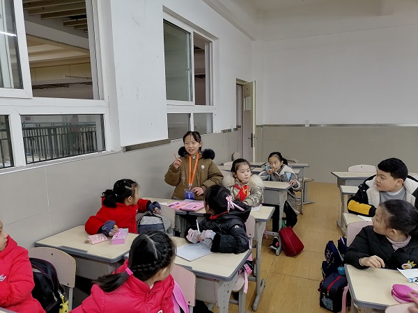 课堂主体:课堂上,小记者们在校园记者团老师的带领下一起回顾了上次课程的课后任务:分享一个精彩的故事开头。小记者乐睿喆、刘思妤以学校开展的元旦节活动为例,讲解了一个精彩的的活动开头,吸引了全体小记者的注意,随后其他小记者也纷纷进行了分享。