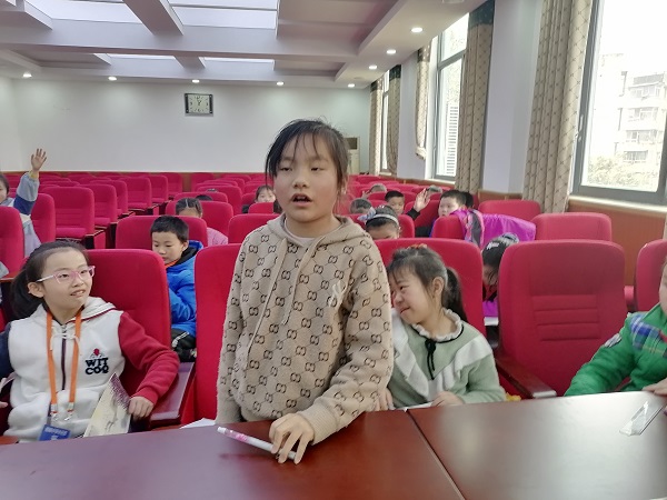 课堂上,校园记者团老师提出“好的导语应该选取哪几方面的内容来写?”小记者展开讨论,纷纷提出自己的看法:“导语要写最精彩的内容”“好的导语一定是要让读者读完之后,就知道这则新闻写的是什么。”“要抓住要点简洁明了”校园记者团的老师而后对问题进行了总结。