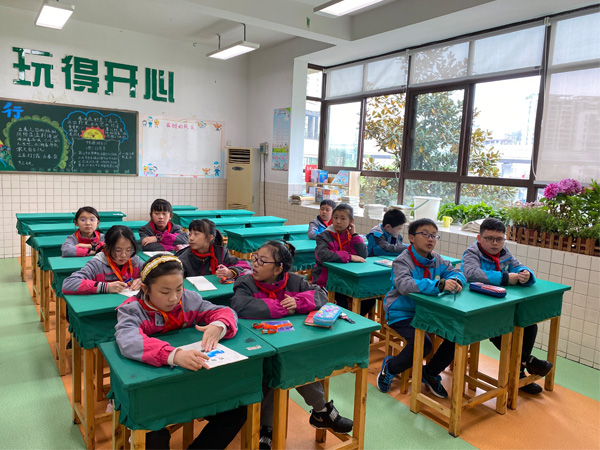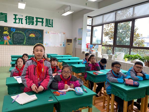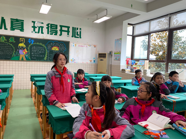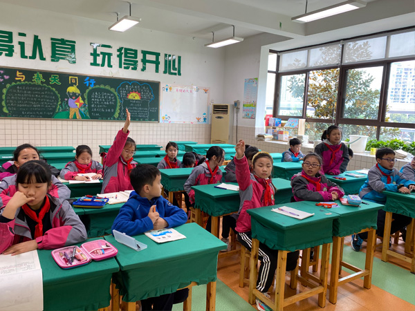小记者在课堂上积极回答问题。
