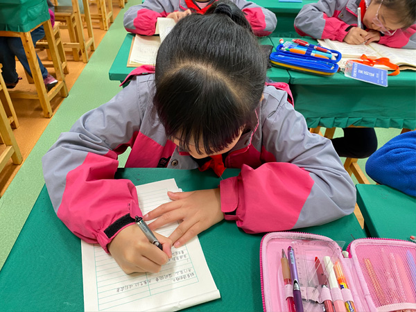 小记者吴梓潼认真记笔记。