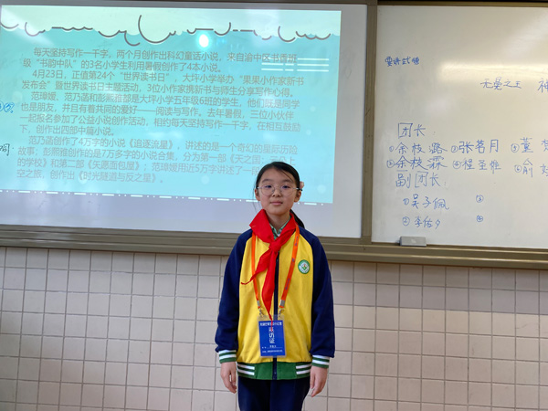 本次课上还进行了团长与副团长的竞选,在校园记者团团长与副团长竞选环节,12位小记者积极地参与了竞选。在竞选演讲过程中,小记者们不卑不亢、落落大方地进行自我介绍,大胆毛遂自荐期望获得同学们的投票,小记者张潇予更是提出了有利于团队建设的可行方案。最后在所有小记者的共同见证下,票数最高的两位小记者俞好和吴子佩当选本届校园记者团的团长和副团长。