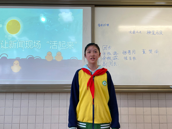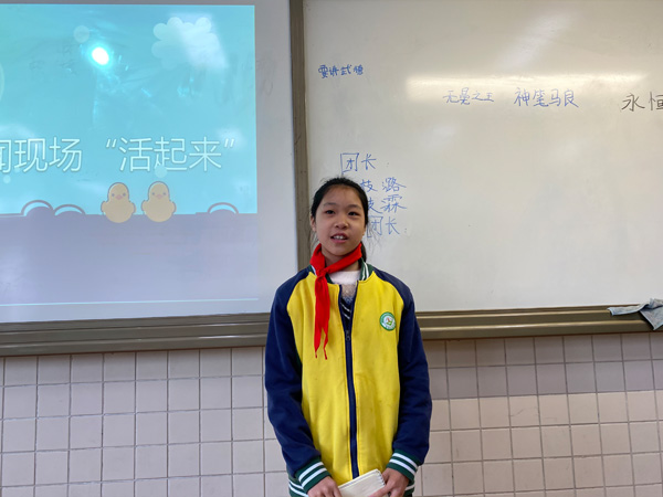 课堂上,小记者对如何写好新闻现场提出自己的感悟,小记者孔馨悦表示要写好新闻现场,需要提前收集、了解活动的相关信息,深入活动现场认真观察,通过采访将获得的信息详细的记录下来。小记者吕姿谕则认为,在写作时不用事事详细,把最主要、最重要的部分写清楚,其他部分可以一笔带过。其他同学也纷纷提出自己的看法,何彦莹说道:“写好新闻一定要写好细节,是一个从点到面再到点的过程,还要尽可能的多去采访,多获取新闻素材。”校园记者团老师根据小记者的回答做了课堂延伸,并在课堂上进行了总结。