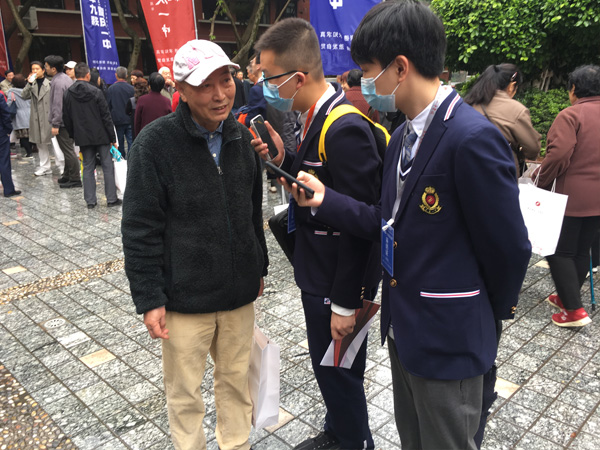 小记者对校友进行了采访,“请问您对学校印象最什么的事情是什么呢?”“在校庆九十周年回到母校有什么样的感受呢?”一位校友表示:“我永远怀念我在一中学习的那段日子,它承载着我的青春,也成就了我的未来,我祝愿一中越来越好!”不少校友纷纷有感而发,表达了自己对于母校美好的祝愿。