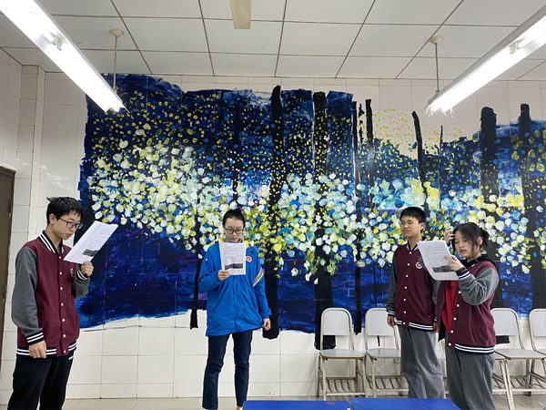 随后,确定了角色的分配并进行排练,通过对每一个场景的排练观察,社团老师进行了分析,存在比较多的问题,首先每个节点的场景、、串词、台词、展示方式还不是很清晰;第二像十九大这样的场景主题太大,而且很官方,不好展示;第三每个情景的展示比例不均衡问题以及其他细节等。