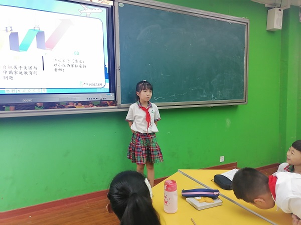 随后,社团老师通过漫画、图片和材料帮助小记者们了解记者采访的情景以及两国对教育的不同理念。课堂上还通过对采访案例中小记者们对谭森先生的提问的总结,帮助小记者明确在生活中的一些学习和生活体验常常会影响我们对一些事件的看法。小记者们还分享了自己对了解到的社会热点新闻,积极关注国内国际和社会的变化