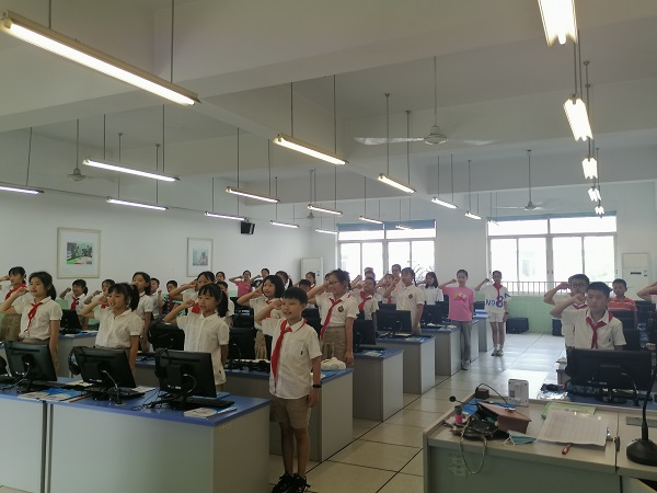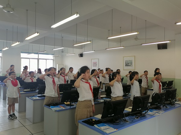 “我是珊瑚实验小学的学生,我志愿加入小记者队伍......”在本节课的最后,珊瑚实验小学小记者社团举行了成团宣誓仪式,小记者充满斗志地进行了宣誓,愿他们能做一个“校园的发现者、梦想的记录者、文化的传播者”。