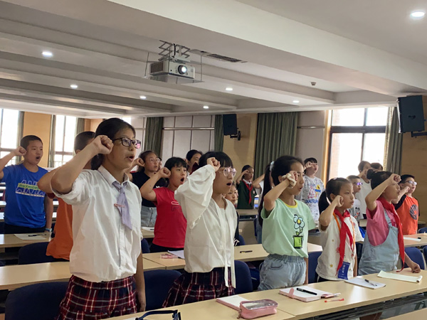 “我是九龙坡区人和小学的学生,我自愿加入小记者队伍......”在本节课的最后,校园记者团举行了成团宣誓仪式,小记者充满斗志地进行了宣誓,愿他们能做一个“校园的发现者、梦想的记录者、文化的传播者”。