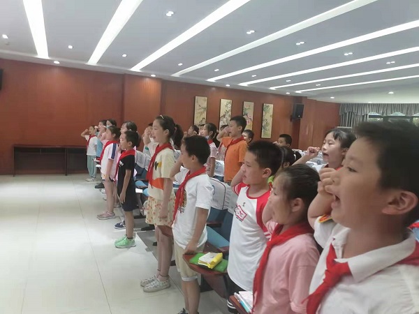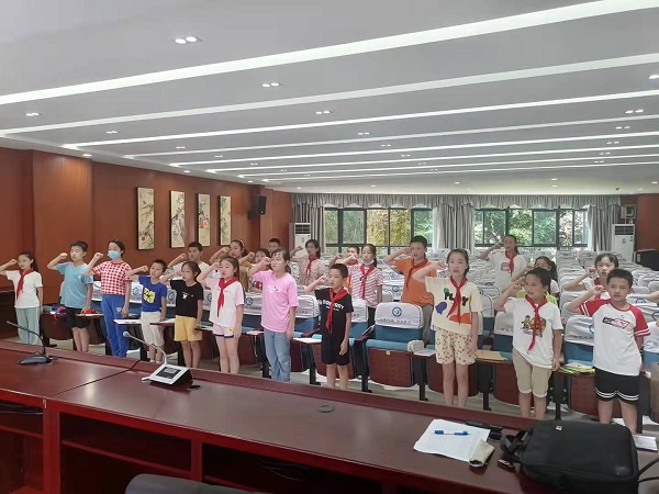 “我是金山小学的学生,我自愿加入小记者队伍......”在本节课的最后,校园记者团举行了成团宣誓仪式,小记者充满斗志地进行了宣誓,愿他们能做一个“校园的发现者、梦想的记录者、文化的传播者”。