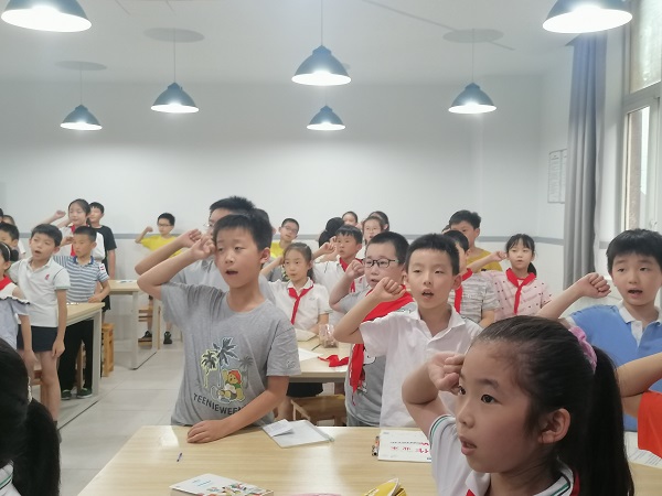 “我是人和街小学的学生,我自愿加入小记者队伍......”在本节课的最后,校园记者团举行了成团宣誓仪式,小记者充满斗志地进行了宣誓,愿他们能做一个“校园的发现者、梦想的记录者、文化的传播者”。