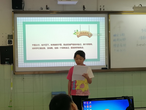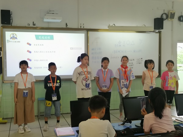 课堂主体:课上进行了团长与副团长竞选,在竞选演讲过程中,小记者们不卑不亢、落落大方的进行自我介绍,大胆毛遂自荐期望获得同学们的投票。最后在所有小记者的共同见证下,票数最高的一位小记者赵梓馨当选本届校园记者团的团长,同时范佳妤和姜昀希成为校园记者团副团长。