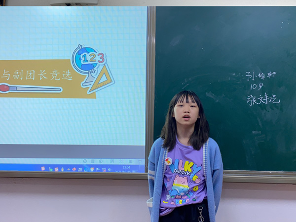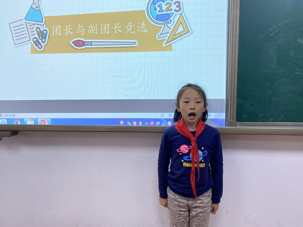 课上进行了团长与副团长竞选,在竞选演讲过程中,小记者们不卑不亢、落落大方的进行自我介绍,大胆毛遂自荐期望获得同学们的投票。最后在所有小记者的共同见证下,票数最高的小记者张文韦艺当选本届校园记者团的团长,同时孙梓轩当选记者团的副团长。