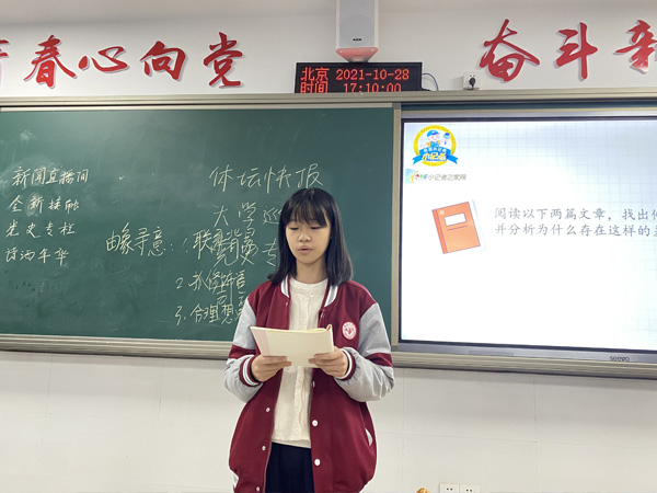 新闻是什么?有什么样的特点?新闻和作文的区别在哪里?10月28日,重庆渝北中学校园记者团的小记者们开展了以“认识新闻/新闻的特征、结构与要素”为主题的《中小学生媒介素养》课程学习。本次课程讲述了新闻写作的含义、新闻写作的方法与技巧以及新闻和作文的区别等关键概念,主要让学生对新闻写作的整体结构和具体内容进行探讨,在面对海量信息和大型事件的时候,可以有一个清晰的新闻意识和撰写新闻的能力。
